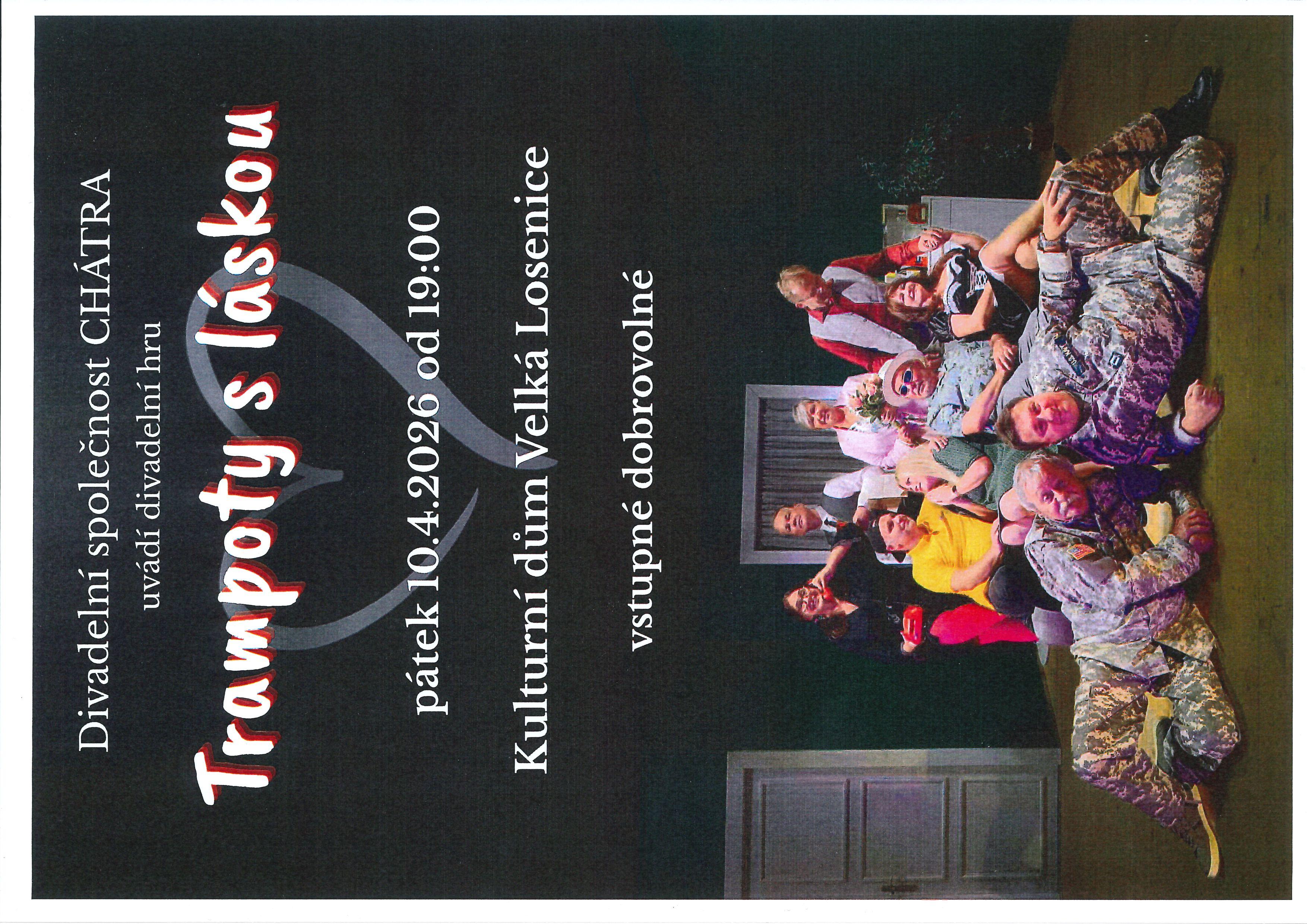 Divadelní společnost CHÁTRA zve na divadelní hru TRAMPOTY S LÁSKOU - pátek 10. 4. 2026
