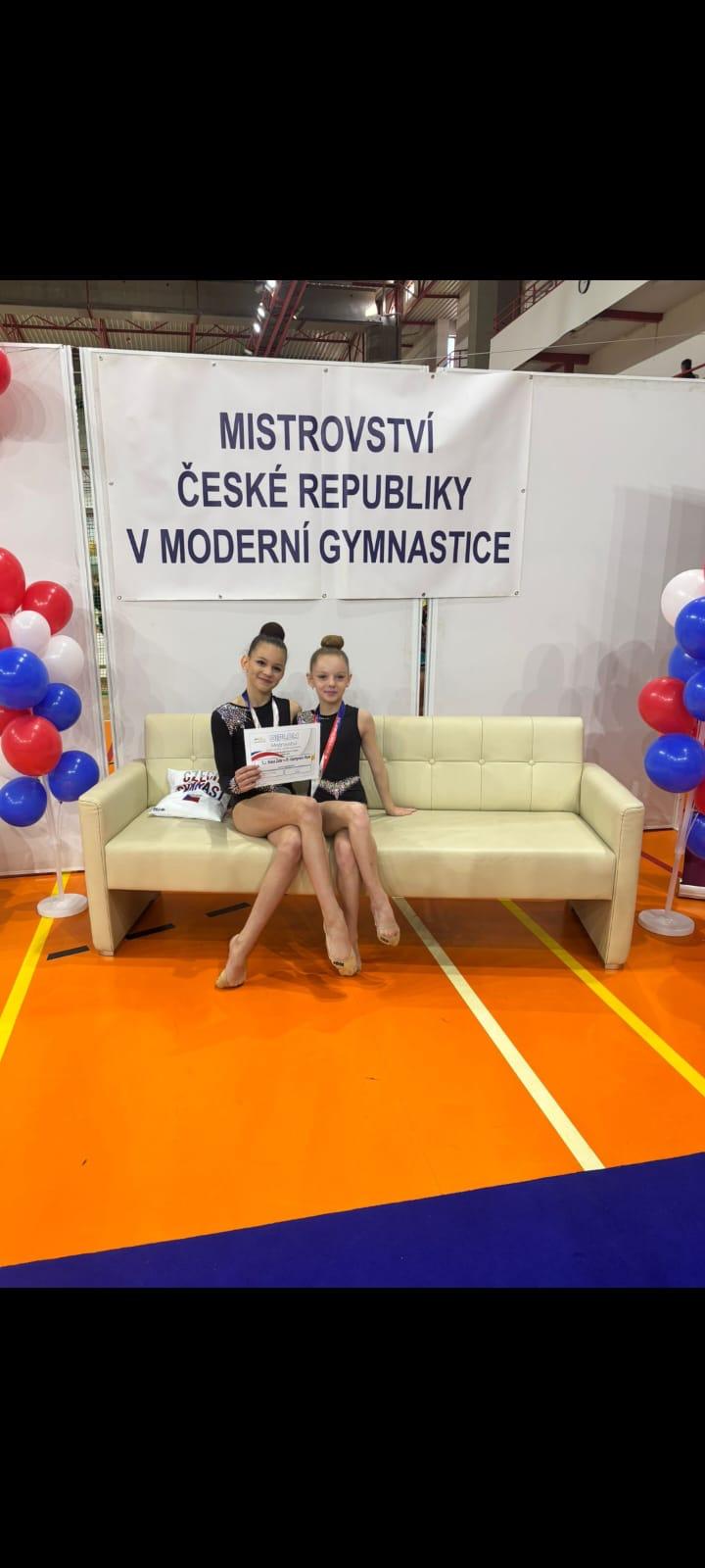 Nikol Vetešníková (z Velké Losenice) a Ester Bencová (z Nových Dvorů) reprezentovaly v kategorii nadějí mladších (ročník 2014 a mladší). Jejich sestava s obručemi a názvem „Gangnam style“ byla rozhodčími ohodnocena druhou nejvyšší známkou a právem holky získaly krásné stříbrné medaile. Holky si ze závodů odváží nejen krásná umístění a medaile, ale především cenné zkušenosti, velikou motivaci a zážitky na celý život. ❤️
