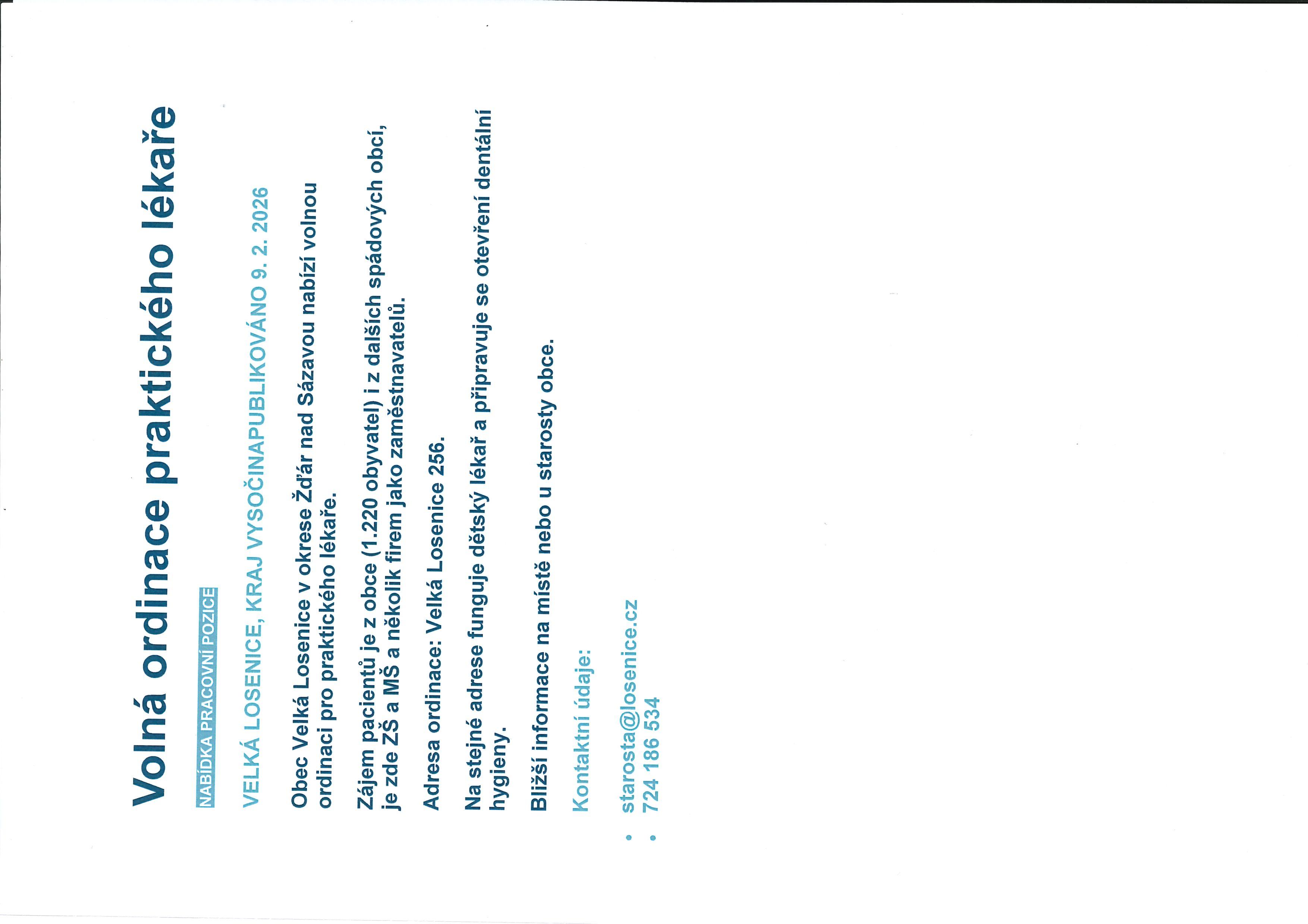 NABÍDKA VOLNÉ ORDINACE PRAKTICKÉHO LÉKAŘE